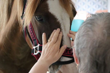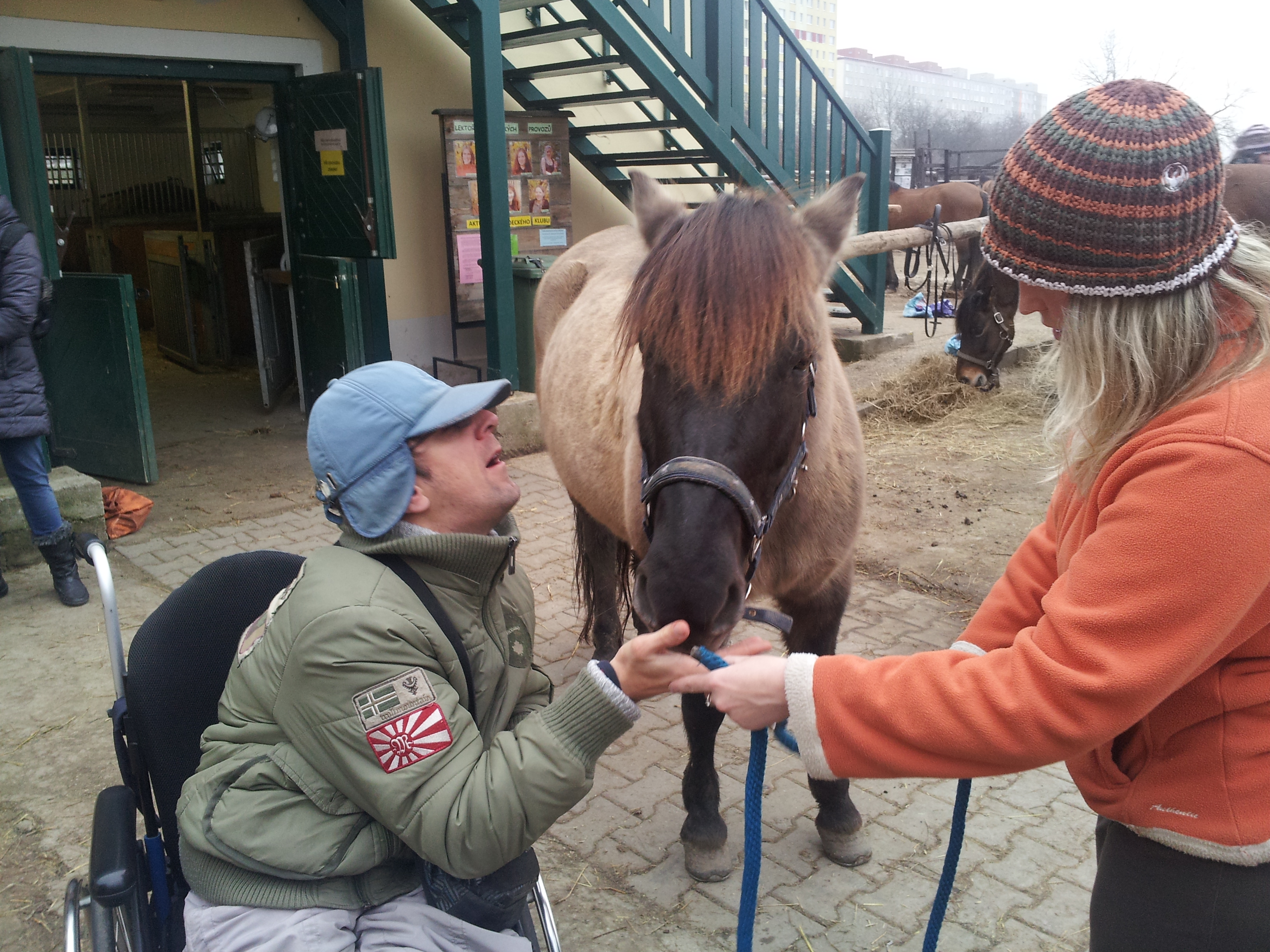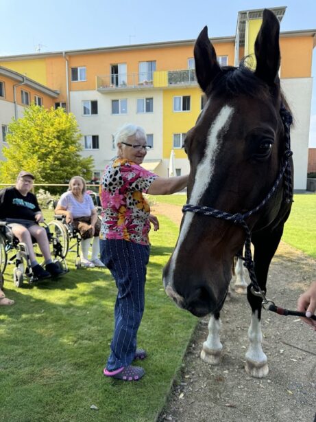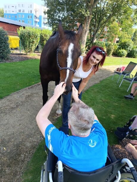 - Krmení koní během terapie.