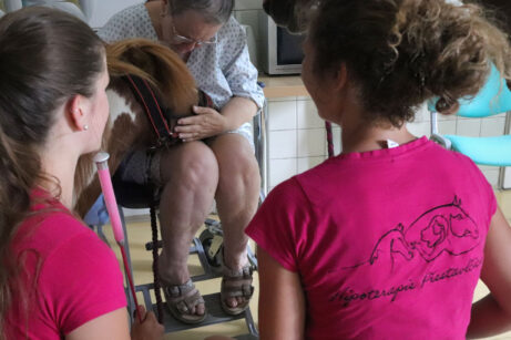 - Pracovat ideálně jeden na jednoho – tzn. v jednu chvíli jeden kůň (a jeho doprovod) v interakci s jedním klientem, zejména při přímém kontaktu s koněm.