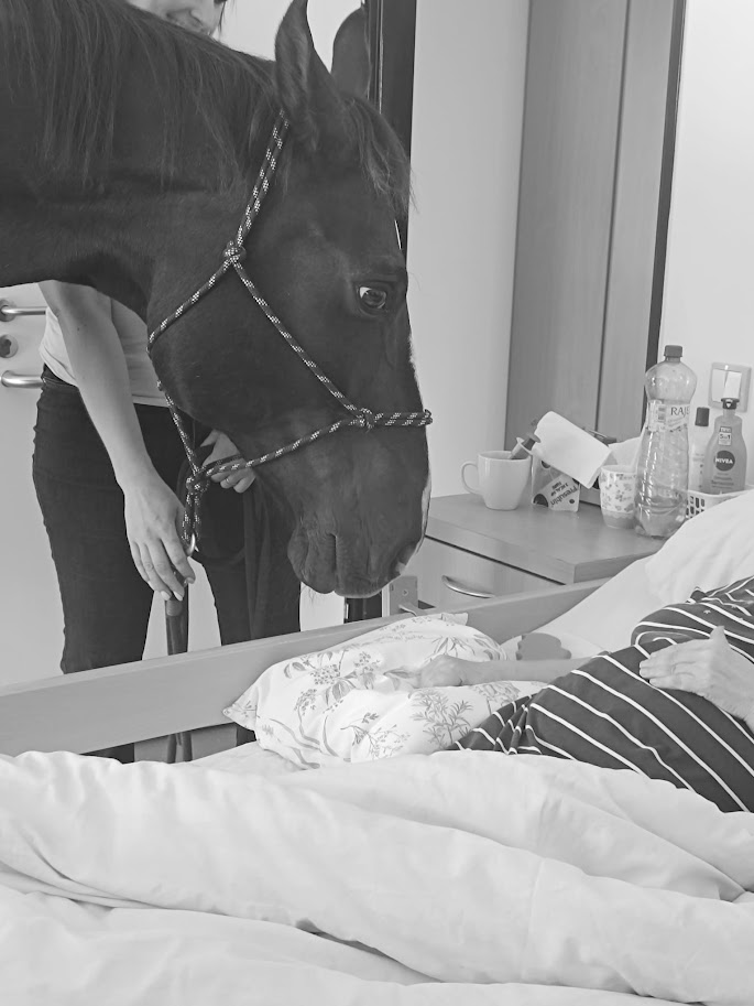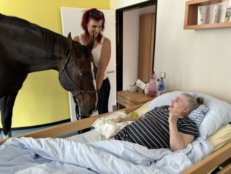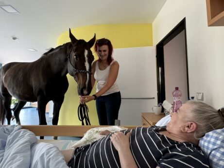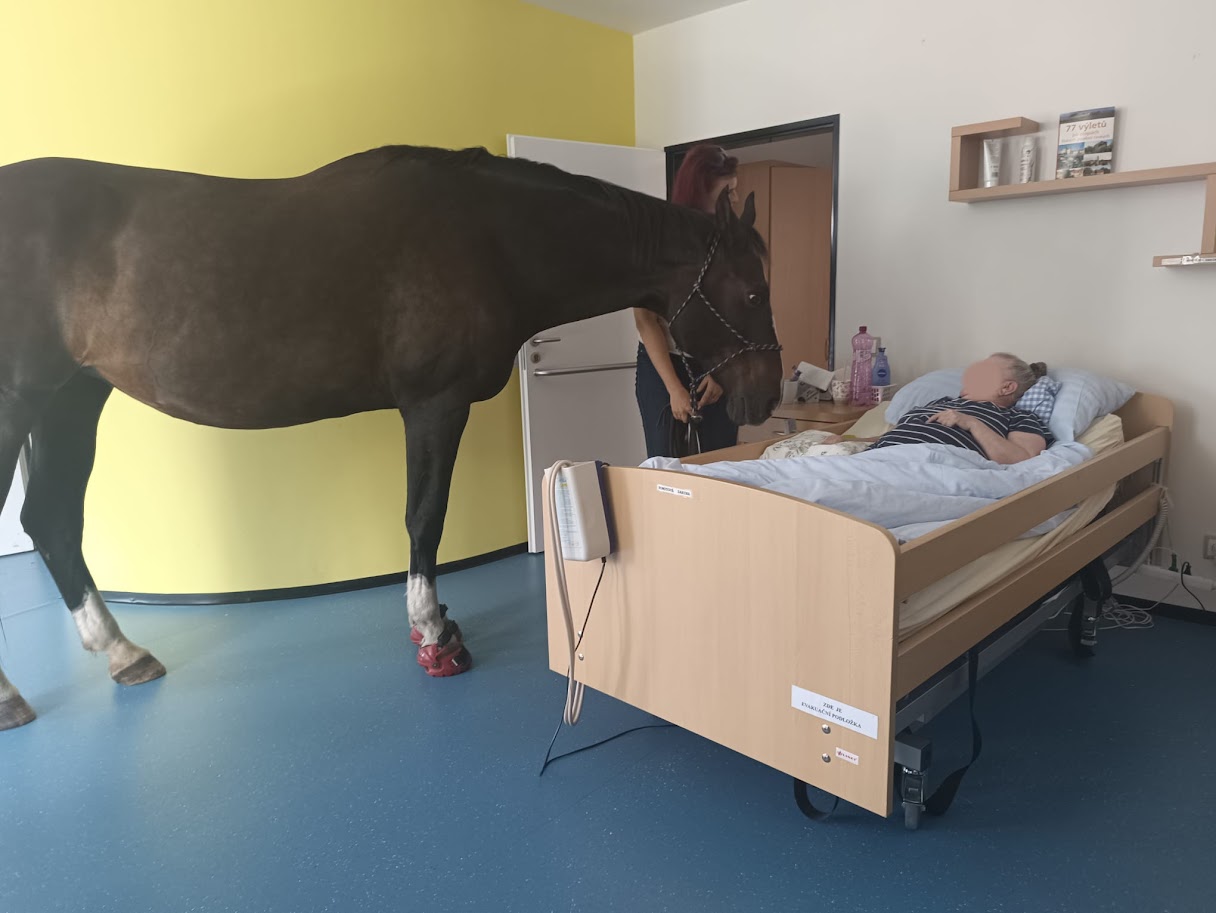 - Navštívit místo předem osobně bez koně - znát prostor, domluvit se na usazení klientů v místnosti, uspořádání místnosti - prostor za zádí koně, seznámit personál s bezpečností, vědět kudy s koněm půjdeme, velikost výtahu, šířka chodeb, dveří, velikost místností apod. Obhlídnout si i např. parkování - dostatečný prostor, ideálně domluvit si vyhrazený prostor - tím předcházet stresovým situacím. Vždy se dopředu domluvit na délce návštěvy, jejím průběhu a množství klientů, kteří se jí zúčastní.