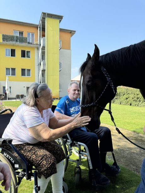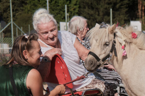 - Netříštit pozornost koně a nezvyšovat rizikovost situace vícero podněty najednou (například kůň stojí u vozíku se seniorem a druhý klient se s koněm nekontrolovaně kontaktuje. Vypnout televizi, rádio apod.).